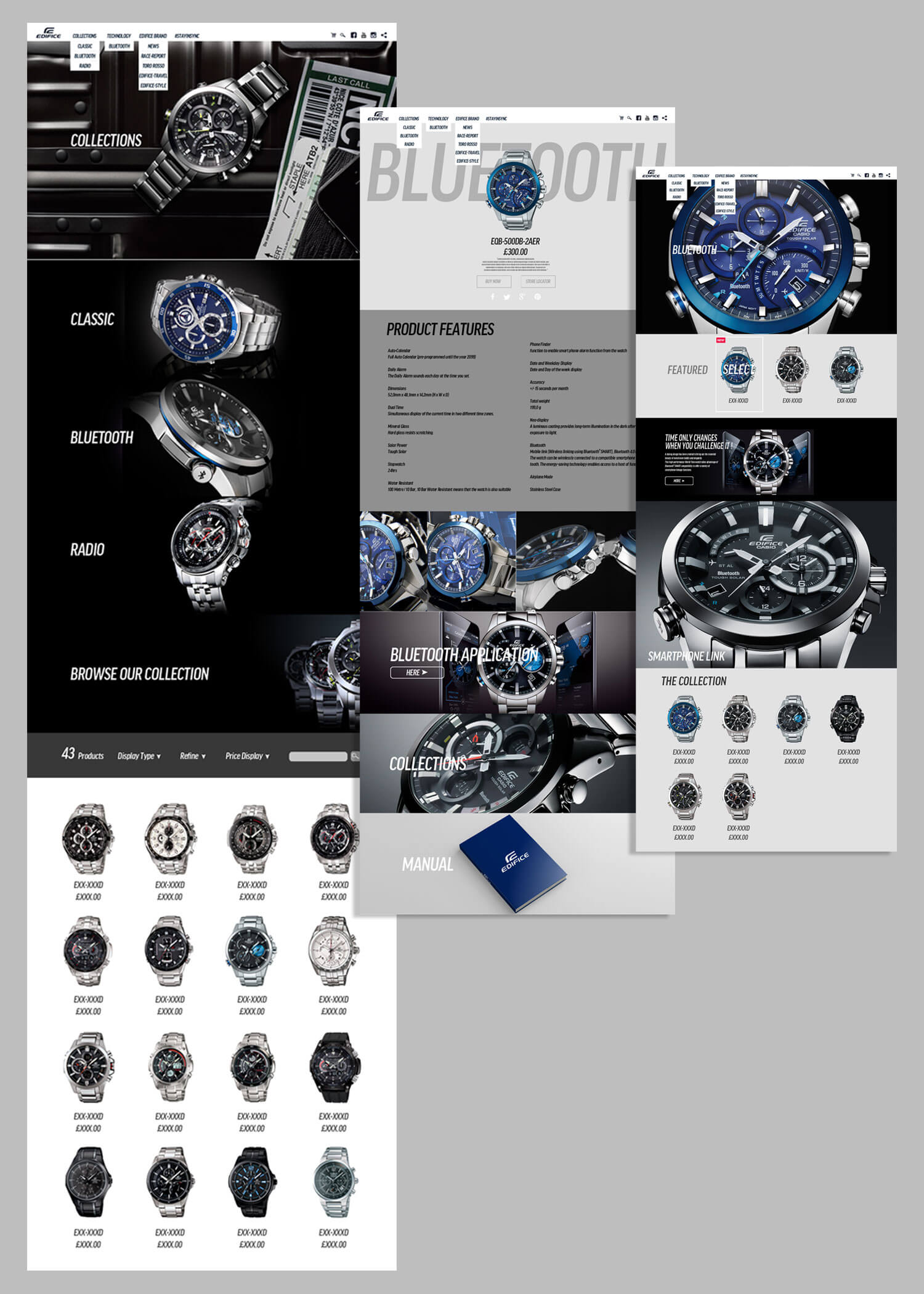 EDIFICE I was heavily involved in the redesign of the Edifice website. The aim was to enhance the look and feel of the site highlighting it's roots and interest in motorsports and tech each Edifice watch features.