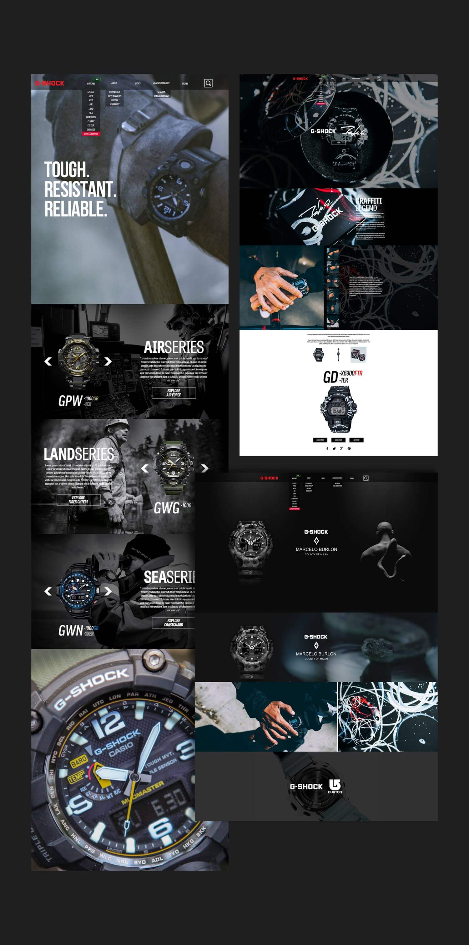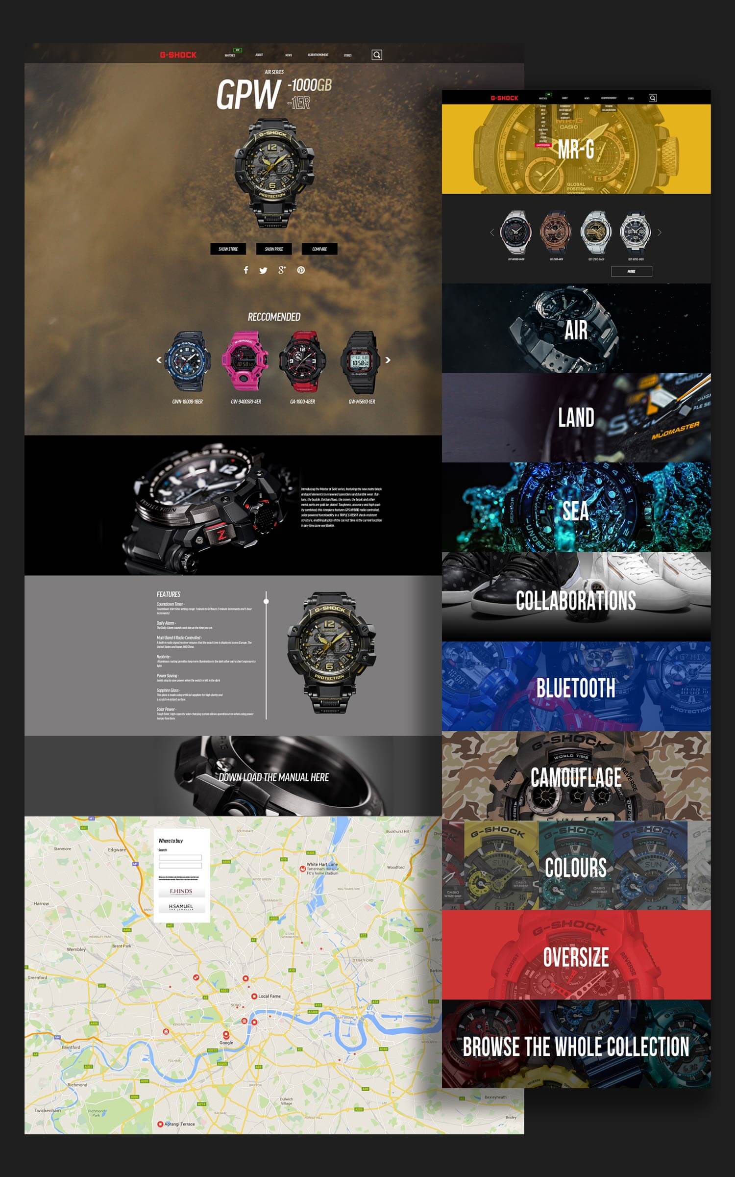 I was responsible for updating and refreshing the G-Shock site during the peak of it's popularity. The aim was to focus on the lifestyle aspect of the brand not only aiming to commercial audiences but also highlight the tech G-Shock features for it's more technical use.